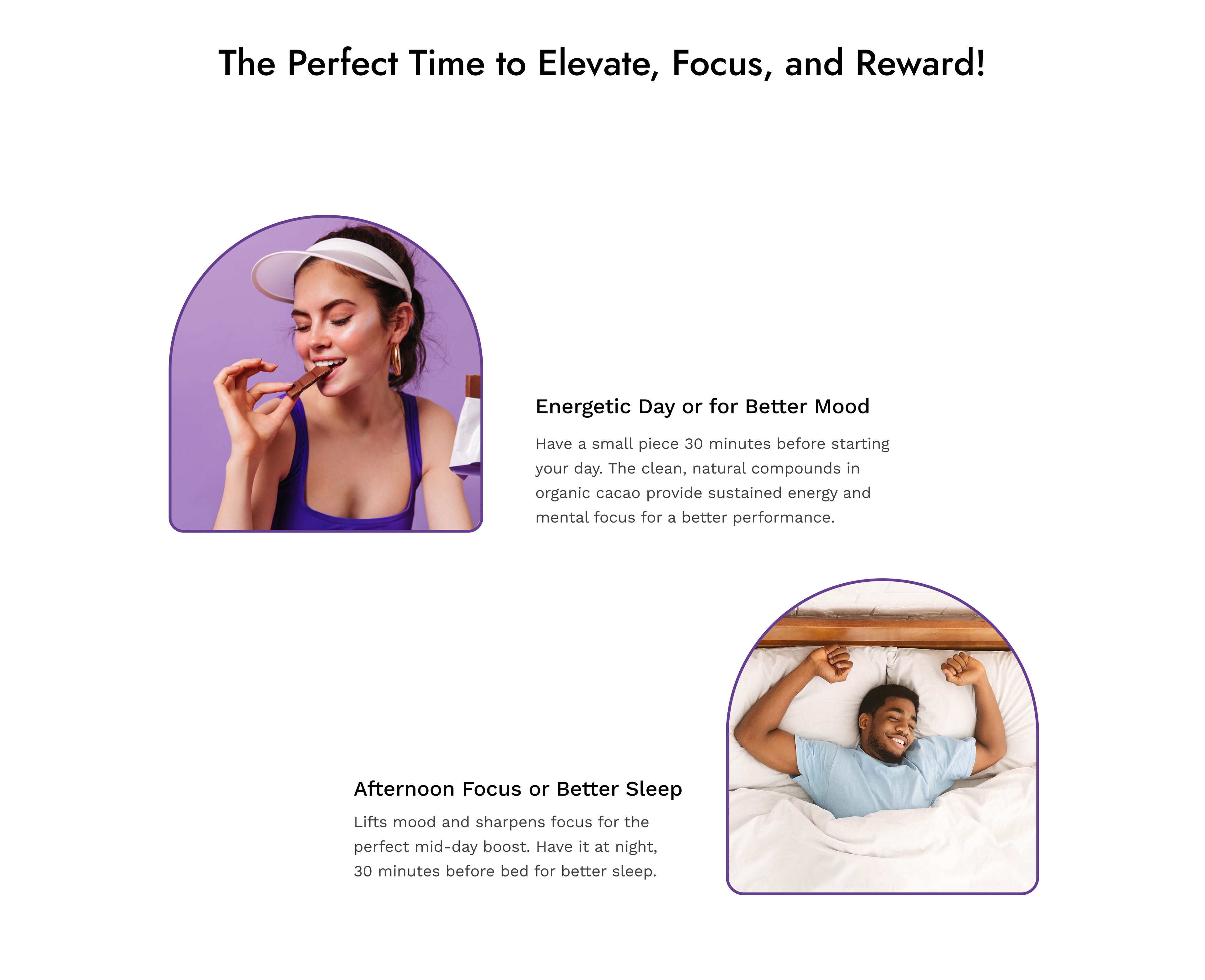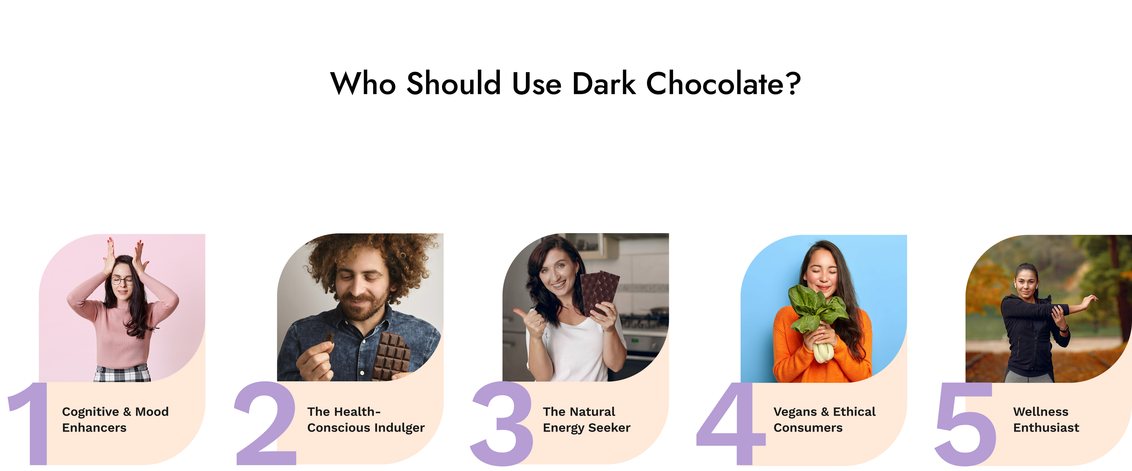 Dark chocolate with 70% or higher cocoa content provides the most health benefits while balancing taste and bitterness. Our brand contains 82% cocoa.