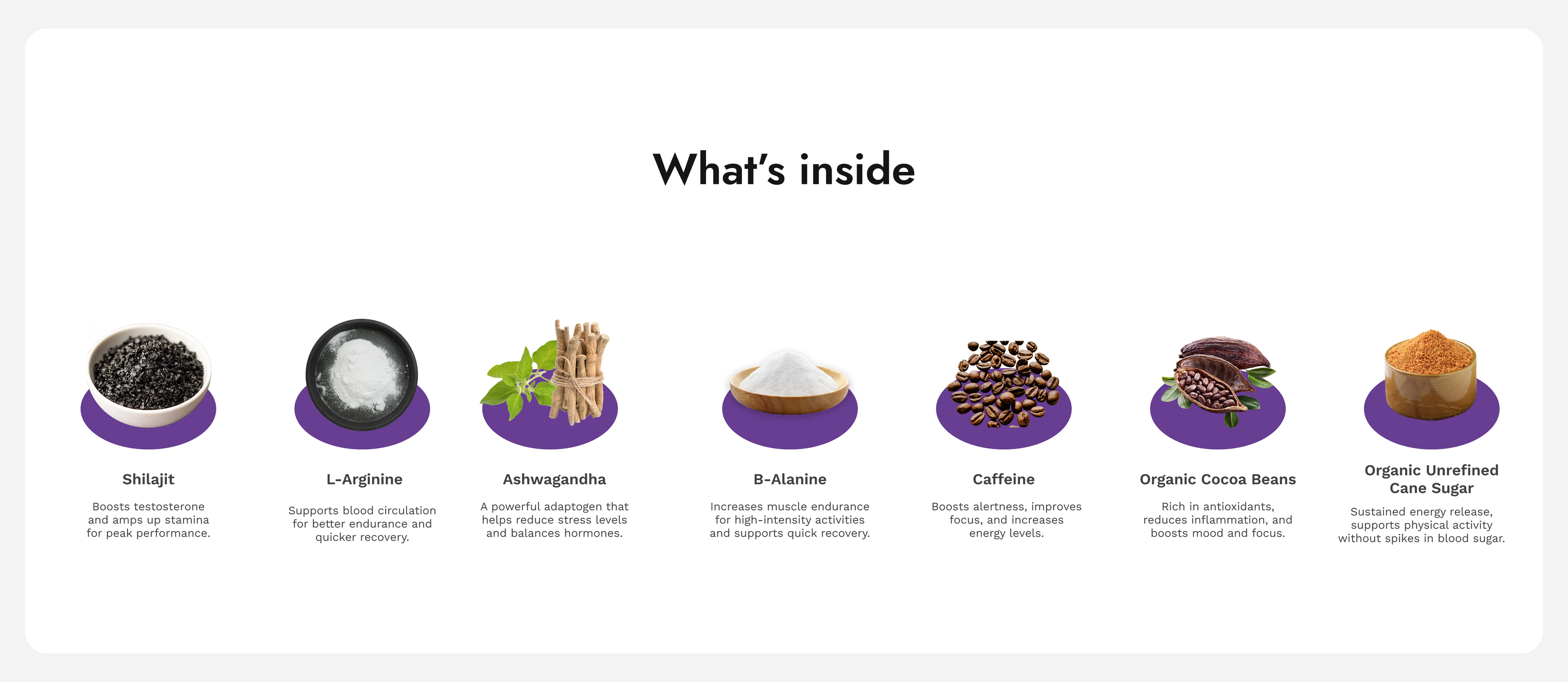 Take your performance to the next level with our expertly crafted supplement, designed to fuel athletes and fitness enthusiasts alike. Powered by nature's most potent ingredients - Shilajit, Ashwagandha, B -Alanine, L-Arginine, Caffeine, Organic Cocoa beans, Organic unrefined cane sugar—this blend is your go-to solution for sustained energy, enhanced endurance, and faster recovery.